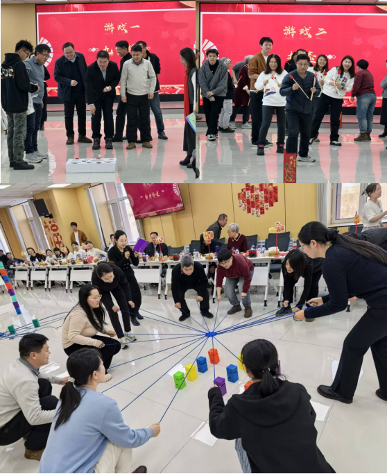 互动游戏环节趣味盎然,“九宫格”“投壶”“合力搭建” 等特色游戏让现场气氛持续升温。教职工们踊跃参与、分组协作,在轻松愉快的游戏中增进了交流、加深了情谊。